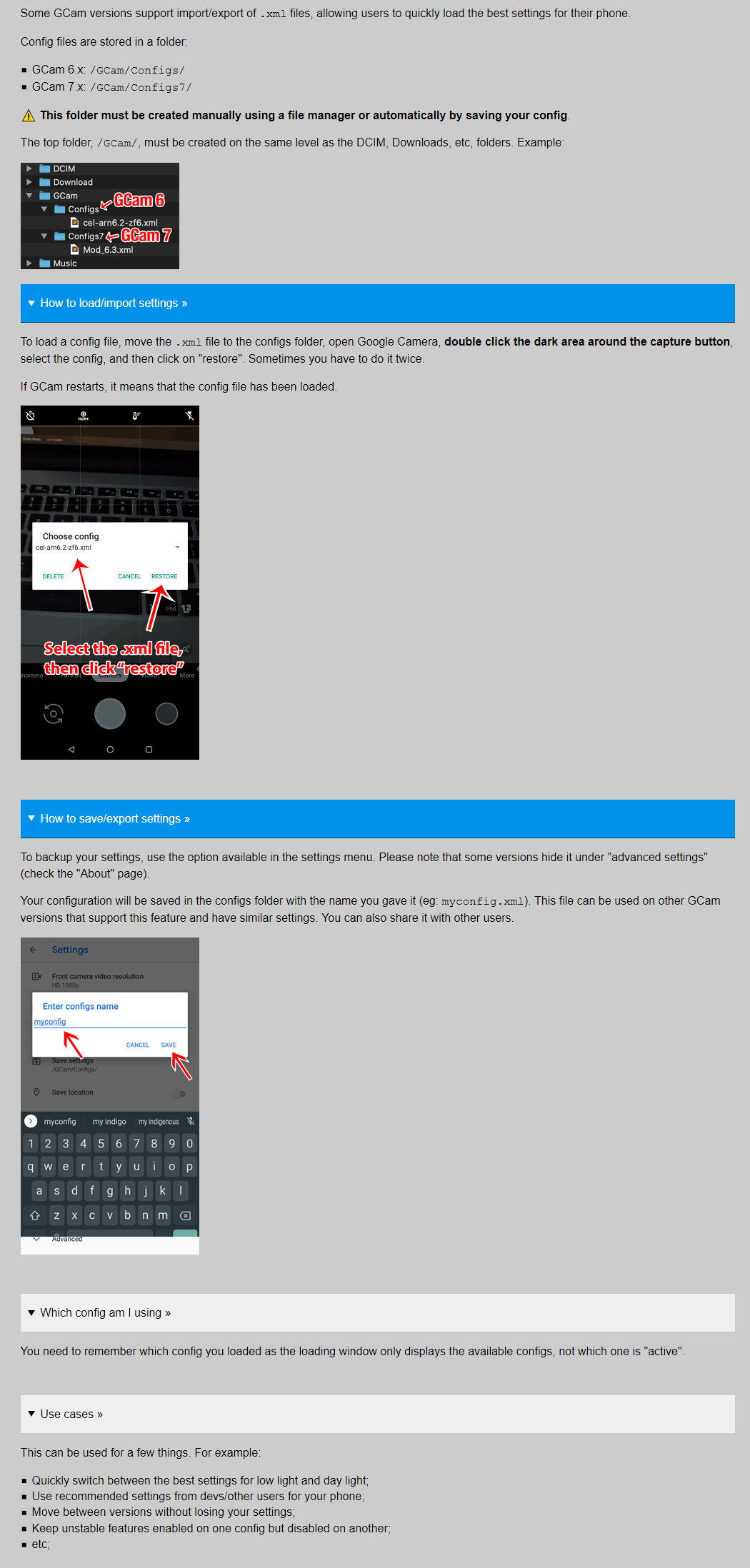 Download apks: - APKs from Parrot043 About config files: Different phones may need different settings. Some GCam versions support .xml config files, allowing users to quickly import (load) and export settings. If GCam doesn't work well on your phone, you m